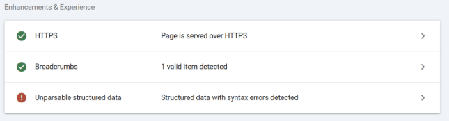 I wasn’t aware of this until my client brought it up. In Google Search Console, when checking the home page, they were getting an Unparsable Structure Data error. This was being caused by a syntax error. Again, this was likely from the AIOS ecosystem.